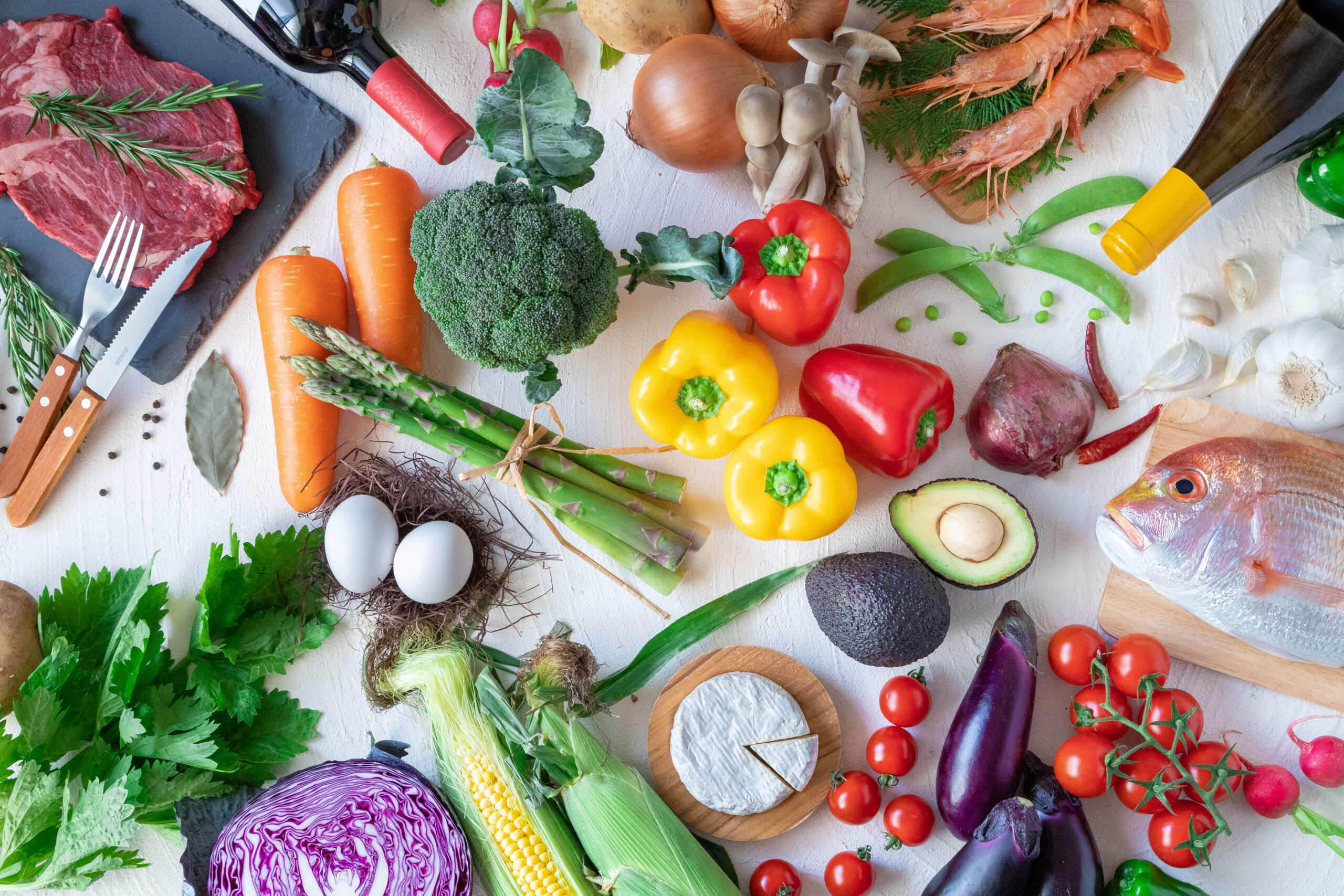 三大栄養素(炭水化物・タンパク質・脂質)に加えて、ビタミン・ミネラル・食物繊維をバランスよくとる食事が理想的です。特に、フルーツや野菜を毎食に少しずつ取り入れることで、ビタミン類を自然に補えます。
